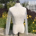 ウェディングボレロ 長袖 パール ブライダル 花嫁 ウェディングドレスアレンジ オフホワイト ボタン 結婚式 二次会 披露宴 エレガント レース お色直し