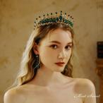 ウェディングヘッドドレス ティアラ プリンセス 王冠 結婚式 前撮り 二次会 発表会 演奏会 ブライダル パーティー 花嫁 ウエディング 緑 グリーン エレガント