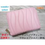 SALE 財布 レディース 二つ折り 短財布 ラウンドファスナー 立体感のあるウェーブデザイン ピンク さらっとしたPU素材 セール 訳あり在庫限り