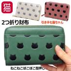 財布 レディース 二つ折り 猫 ミニ コンパクト 小銭入れ 猫柄 ラウンドファスナー ボタン 大容量 合皮 コインケース カードケース ギフト 誕生日