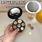 コインケース 小銭入れ コインホルダー レディース メンズ 男女兼用 ユニセックス ミラー付き 円形 丸型 ラウンド 黒 白 シルバカラー シンプル