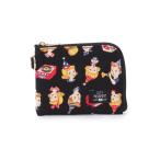 かわいい猫柄 財布 白地 黒デザイン ラッキーキャット柄 ストラップ付き MDM(白と黒)
