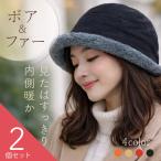 2個セット バケットハット 冬 帽子 レディース ボア ファー 内側ボア クロシェハット 防寒 あったか 深め 小顔効果 ブラック ベージュ サ