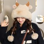 レディース ファー帽子 クマ耳 もこもこ 厚手 女性 キャップ 秋冬 かわいい 単色 小顔効果 保温 暖かい ふわふわ おしゃれ シンプル 防寒 UOSU qtm