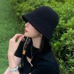 ストローハット レディース 春夏 調節紐付き 帽子 バケットハット ペーパー 透け感あり 涼しげ 小顔効果 シンプル 黒 爆買