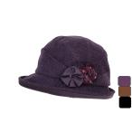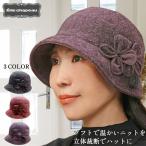 フラワーコサージュウールハット 帽子 レディース 秋冬 クロッシェ クローシュ 防寒 暖か エレガント お花 モチーフ プレゼント 敬老の日