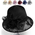 クロシェ ハット 帽子 クローシュ オーガンジー フラワー 深め つば広 日よけ パーティー リゾート レディース 母の日