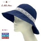 ハット UV帽子 リボンハット 日本製 軽い たためる 帽子 レディース 春夏(ネイビー/モカブラウン)06-113 レースリボン飾りのグログランクローシュ ベルモード