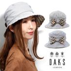 レディース 帽子 大きいサイズ 涼しい 春夏 つば広 UV加工 送料無料 DAKS リボン チェック柄 ダックス ブランド お洒落 ハット