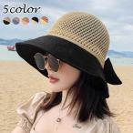 帽子 女優帽 つば広 レディース 女性 ハット 麦わら帽子 リボン 折りたたみ シンプル 日よけ UV対策 日焼け防止 かわいい 上品 おしゃれ