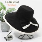 帽子 ハット つば広 リボン レディース あご紐付き 顎紐 リボン 無地 シンプル カジュアル 日除け 日焼け防止 紫外線対策 女優帽 お洒落 可愛い