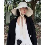帽子 ハット ストラップ付き バック リボン ギャザー ビッグ ハット レディース