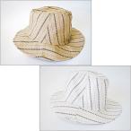 ストライプ 帽子 クラッシャーハット ベージュ ホワイト 紫外線対策 つば長め*クリックポスト可*