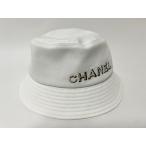 送料無料 CHANEL シャネル ロゴバケット ハット 帽子 レディース ホワイト コットン Mサイズ 超美品