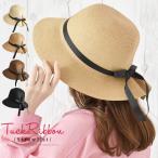 麦わら つば広 レディース ペーパー リボン タック 紫外線対策 日よけ 日焼け対策 ハット 帽子 おしゃれ