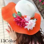 麦わら帽子 レディース ストローハット ぼうし 波型 リボン 花 フラワー 女性用 つば広 おしゃれ かわいい 日よけ 紫外線対策 UV対策 リゾート