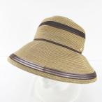 麦わら帽子 ペーパー素材 つば広 ブラウン系