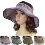麦わら帽子 折りたためるサンバイザー リボン付き帽子 つば広サンバイザー レディース UVカット 紫外線防止