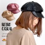 キャスケット レディース 春 帽子 ハンチング帽 キャップ 深め 無地 黒 レザー 合皮 フェイクレザー 大きいサイズ 日除け ママ