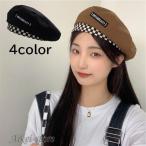 ベレー帽 帽子 ぼうし レディース 女性用 チェック ロゴ カジュアル おしゃれ かわいい おでかけ オールシーズン ブラック ベージュ カーキ ブラ