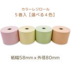 駐車料金サービス券 感熱カラーレジロール 感熱ロール紙 感熱紙 感熱 紙幅58mm × 外径80mm × 内径12mm (5巻入/ピンク・クリーム・みどり・オレンジ)