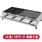 IKK てっぱんたこ焼き器 4連式 18穴たこ焼きプレート2枚 鉄板2連 鉄鋳物 TKO18422 送料無料!!(沖縄・離島を除く)