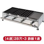 IKK てっぱんたこ焼き器 4連式 28穴たこ焼きプレート3枚 鉄板1連 鉄鋳物 TKO28413 送料無料!!(沖縄・離島を除く)