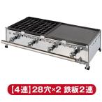 IKK てっぱんたこ焼き器 4連式 28穴たこ焼きプレート2枚 鉄板2連 鉄鋳物 TKO28422 送料無料!!(沖縄・離島を除く)