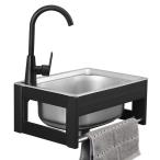 304ステンレス製簡易流し台 壁掛け式キッチンシンク シングルボウルシンク 洗面台 蛇口付きと排水管付き、小型、コーナーに設置可能、省スペース