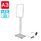 LED ポスタースタンド A3 シルバー LED看板 | 店舗看板 バックライトパネル 電飾 光る看板 光るポスターパネル (会社名・店舗名等の法人名義、団体名は代引きOK)