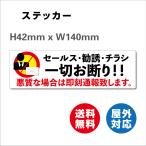 セールス・勧誘・チラシ 一切お断り! サイン ステッカーシール 140mmx42mm 悪質な場合は即刻通報致します 屋内外対応 糊付き 送料無料