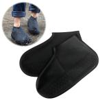 防水シューズカバー ブラック 一足セット 雨や泥から靴をガード シリコン製 耐久性・伸縮性抜群 滑り止め付 簡易レインシューズ 梅雨対策 18から27cm SRC888