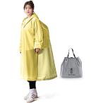 レインコート リュック対応 防災士監修 マチが大きい 背中スナップ 撥水 軽量 収納袋付き(イエロー)