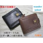 SALE 財布 メンズ ミニ財布 二つ折り ステッチ使いのレトロデザイン コンパクト レザー調 PU素材 カード入れ多数 wander select 訳あり 在庫限り セール 格安