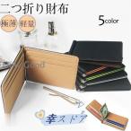 メンズ財布 マネークリップ 小銭入れ付き 二つ折り財布ブラック+オレンジ小さい財布 薄い財布
