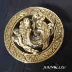 飾りボタン コンチョ ネジ式 鯉の滝登り メダル型 和柄 日本 縁起物 風情 鯉 金色 真鍮製 ブラス ネジ付 スクリューバック シカゴスクリュー パーツ