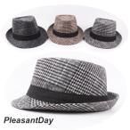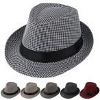 中折れハット メンズ キッズ 中折れ帽 パナマハット 帽子 ハット おしゃれ チェック柄 あたたか 防寒 秋 58cm/54cm