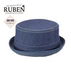 送料無料 大きいサイズ RUBEN デニム ポークパイ ハット ネイビー ロールアップ 男女兼用 帽子 サイズ調整可能 Bigsize