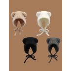 1個 無地 ぬいぐるみ レース付き 猫耳ハット ブリムレス ニット帽 温かい冬 デイリー買い物 旅行