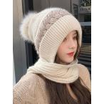 女性用ニット帽 耳当て付き、ウール製ビーニー マフラー マスクセット、アウトドアアクティビティ、秋冬スキーなどに便利な防寒アイテム