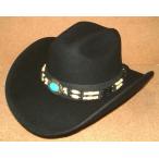 USA入荷 【MONTECARLO HAT モンテカルロ】 フェルト製 ターコイズ コンチョ & ボーンビーズ 装飾 ウェスタンハット テンガロンハット (約58cm) 黒 FUNNY