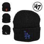 47 ニット帽 MLBリブ編みカフ 黒 ブラック ドジャース ヤンキース LA NY