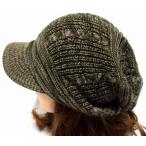 ニットキャスケット すっぴん帽子 秋冬 つば付 ニット帽 たて編み模様 カーキ&ベージュ knit-863-03 爆買
