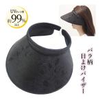 レディース サンバイザー 日除け日差しカット UV 日焼け対策 紫外線 UV対策 ローズ柄 大きめつば 顔 首筋 ガード 便利 夏 バラ柄日よけバイザー