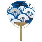 四国団扇 うちわ 麻の葉青海波 青 約28×41cm