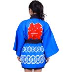 はっぴ 法被 祭 腰ひも付き 男女兼用 つなぎ柄 イベント 行事 楽しいひと時 楽しい思い出 一体感(ブルー, Free Size)