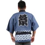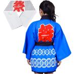 法被 はっぴ お祭り法被 お祭りハッピ イベント法被 イベント用はっぴ 大人用法被 フリーサイズ 法被手拭腰紐3点セット (ブルー)
