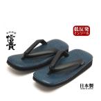 信貴 男性用 しわ加工 レザー調 おしゃれ雪駄 草履 合皮鼻緒 低反発 黒アメ底 日本製 ブルー