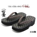 信貴 男性用 下雪駄(げせった) 市松 黒畳 厚底草履 紗綾形 日本製 8寸6分