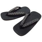 雪駄 印伝風 紗綾形 黒台 3L-4L